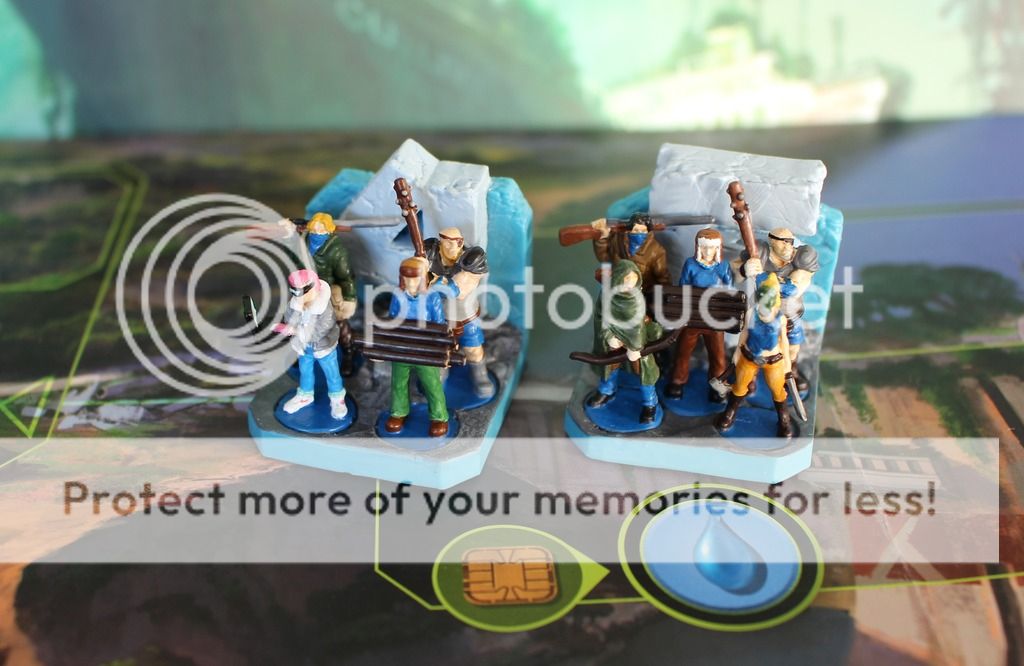 On est tombé sur l'événement tempête de sable qui à durée quasi toute la partie donc pas beaucoup d'effet pression mais les 2-3 fois qu'il y en a eu ben ça fait bien chier quand même. On a trouvé le jeu bien chaud pour nourrir ses survivants ou pour avoir assez de ressources pour solder les événements. On en a solder 4 quand même mais on en a subit certains plusieurs tours. On fini à 20 points chacun ce qui me parai peu avec moins d'une dizaine de survivant dans l'abri.