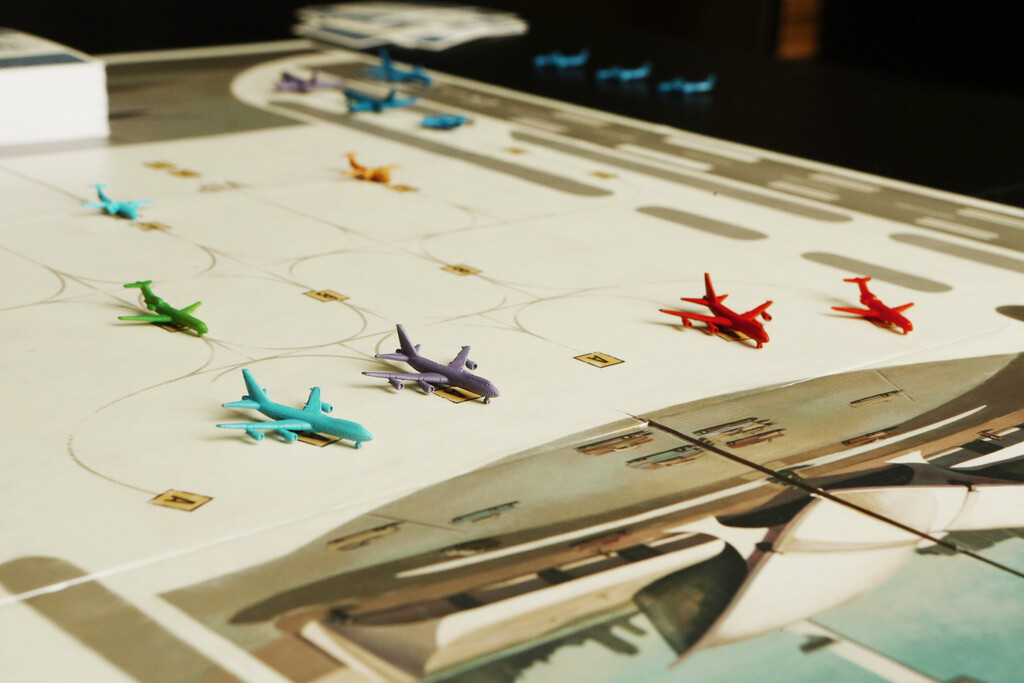 Je ne sais pas vous mais moi j’adore l’aviation et quand un jeu pointe son nez, ça m’intéresse… J’ai découvert ce projet un peu par hasard sur BGG. https://www.kickstarter.com/projects/20 … =discovery En quelques mots, les joueurs se retrouvent parachutés à l’aéroport JFK dans les années 60. Chaque joueur va prendre le contrôle de l’une des six compagnies aériennes disponibles. Le but du jeu est de faire décoller l’un de ces avions de l’aéroport; celui qui y parvient remporte la partie. Mais il faudra composer avec la météo, les aléas des passagers et pourquoi pas, être un peu vilain avec vos adversaires ! Au niveau du matériel de jeu, un grand plateau représentant le tarmac de l’aéroport, des cartes, des tokens et surtout de jolis avions en plastique. 2 à 6 joueurs pour des parties de 30 à 60 minutes. Les règles sont disponibles ici en anglais : https://boardgamegeek.com/filepage/1223 … f-rulebook Il est prévu que la règle anglaise soit traduite mais pour l’instant pas d’autres précisions. Sauf que vous noterez qu’il n’y a pas de texte sur le matos, à part les titres des cartes. Les photos disponibles : https://boardgamegeek.com/images/boardg … ar-takeoff Deux vidéo de présentation sont disponibles, voici déjà la première : https://boardgamegeek.com/video/78605/c … f/teaser-1 Le jeu sera en démo à Essen; avis aux amateurs !