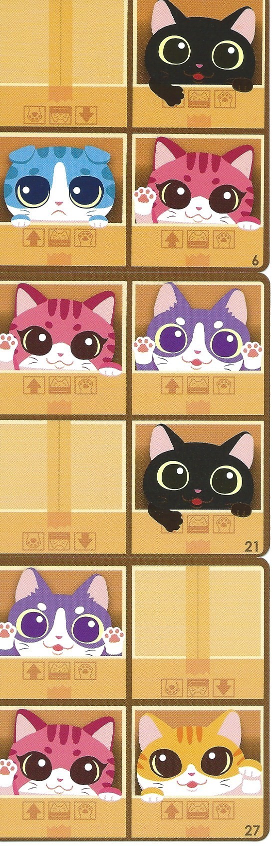 voici un petit KS pour un petit jeu très sympa de Aza Chen. Le jeu s’appelle Cat Box, et aujourd’hui l’éditeur Australien Grail Games le propose pour 21$ australien (16$ américain soit 14,1€ aujourd’hui) avec frais de port inclus dans le monde entier (les jeux une fois produits seront acheminés en Europe et ensuite envoyés de l’Europe), je viens d’avoir David, l’éditeur, le jeu tombe à 20$ fdp inclus à partir de la deuxième copie. Il y a d’autres pledges pour que vous puissiez aussi commander un autre jeu de chez Grail Games (Matcha, Too Many Cinderellas, One Zero One, Circus Flohcati). (Attention dans ces cas il y aura une augmentation des fdp ).