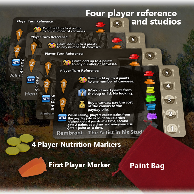 Le principe : les joueurs endossent le rôle d’un artiste qui doit réaliser des commandes afin de pouvoir manger à la fin de la journée !