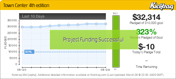 Je viens de vérifier le montant de la participation pour la campagne Indiegogo: il était de 40€ pour Town Center + 1 extension avec livraison en France et de 45€ pour une livraison en Europe.