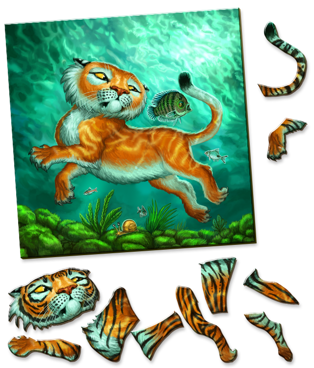 Dans les grandes lignes, on joue des cartes pour aider notre petit tigre à retrouver ses rayures, on trouve des trésors, on croque des animaux, on fait quelques crasses aux autres joueurs…
