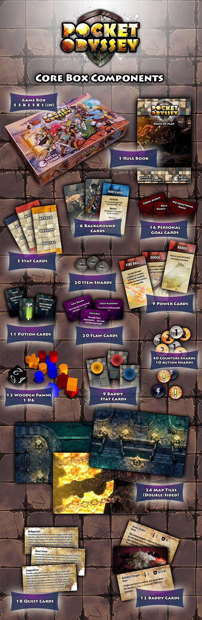 ca n’est que mon avis mais… je trouve qu’on est plus dans du classique Dungeon crawling (avec un petit enrobage scénaristique pour justifier la mention RPG) que dans un vrai jeu de rôle miniature non ? Sans compter que le seul aspect “pocket” du jeu tient dans le fait que tout le matos (assez abondant au demeurant sans compter l’extension) a été miniaturisé. Pour moi (mais peut être que je me trompe une fois encore )un jeu de poche c’est un jeu avec peu de matos pour qu’on puisse y peut jouer sur une tablette dans un train par exemple. Même le prix n’est pas pocket comparé à un jeu aux dimensions “normales”.