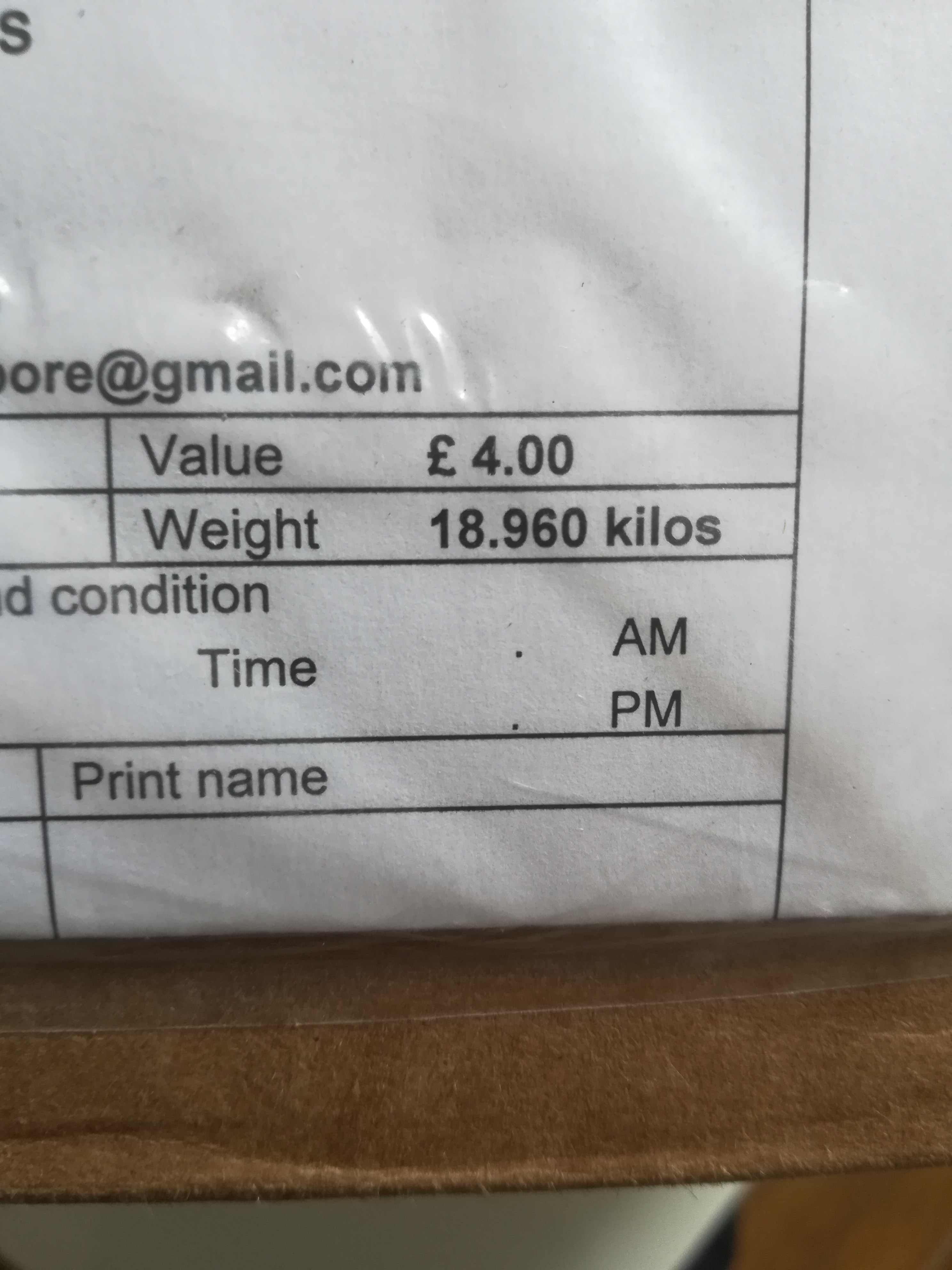 (rien de mon coté, mais de toute façon entre le mail et les 3 plombes pour atteindre la douane suisse, le dédouanement qui bloque parce que pas de facture, la lette de l’administration qui me laisse 7 jours ouvrable pour fournir une preuve d’achat sinon renvoi à l’expéditeur, puis encore 2 semaines pour que ça bouge, et le carton qui arrive ouvert, avec des petites pièces en plastique gris qui tombent sur le sol quand le postier m’amène mon paquet (avec une jolie facture de dédouanement+frais de dossier+prise de renseignement, soit un bras mais pas en plastique))