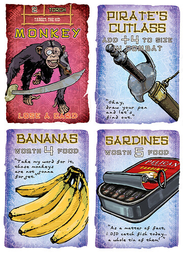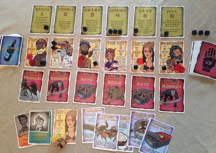 3) La position dans le canot est aussi importante ; les joueurs les plus proche des provisions se servent en premier, et ceux à la proue dirige le bateau. Le jeu se conclu quand le canot trouve la terre ferme (il peu arriver vide :p). La mer est déchainée, il faut parfois s’entraider au lieu de se battre !