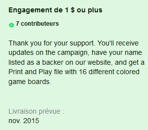 no matter what level you pledge at, during the campaign you’ll receive a file of 16 different colored game boards that you can print off. You’ll need to supply your own tokens and pawns but it gives you the game board to play on rather than using part of a Checkers or Chess board. Plus, each board prints off onto a regular letter sized piece of paper.