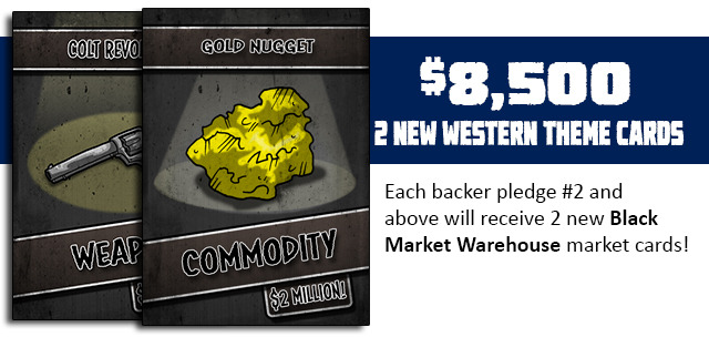 Le stretch goal de 8000$ est finalement dépassé! Les premières cartes du thème «Western» sont donc à nous! ![]()