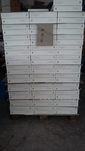 Here is one carton of labeled CDs for the original soundtrack. On that picture you can see some trays, the small ones on top being the additionnal tray for Matsuri figurines (Samurai and up), under them you can see the square trays for the Accessory Pack and the big ones on the bottom are the base trays for the Collector box.
