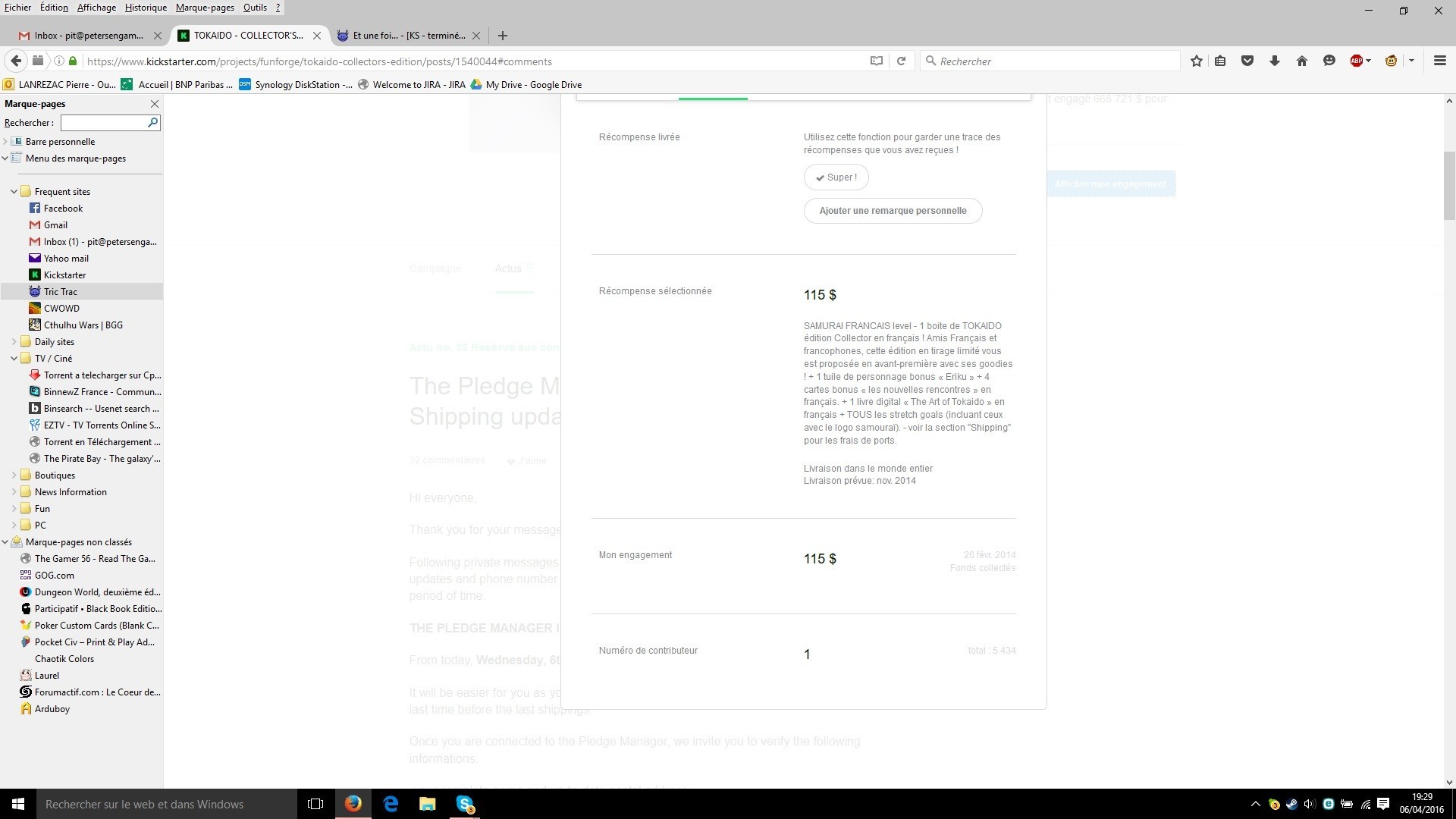 Bah quand tu vois qu'il va y avoir des mois de différence entre les premiers backers livrés et les derniers...