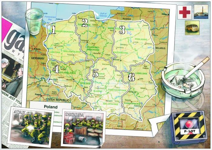 Le jeu est défini en “wargame light” ce qui ne me semble pas vraiment adapté à ce que j’ai lu des règles et des visuels (pas d’hexagones ! et presque pas de dés !). D’ailleurs concernant les visuels, excepté la boite que je trouve pas top, les plateaux sont plutôt sympa.
