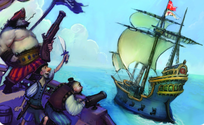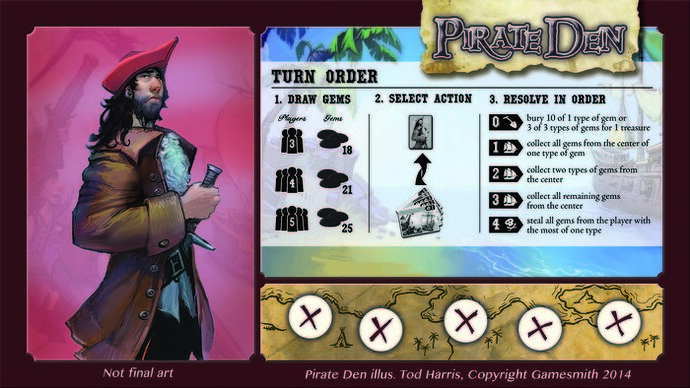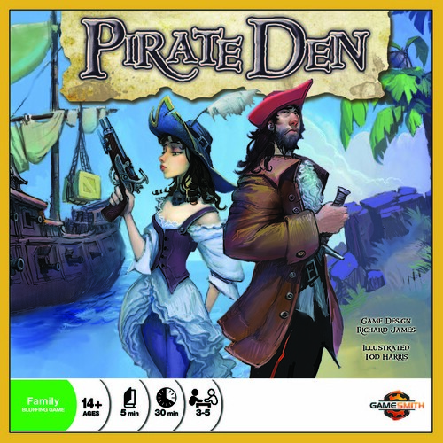 Pirate Den is a pirate-themed bluffing game by Gamesmith for 3 to 5 players that plays in under 30 mins. Fun, elegant, and beautiful!