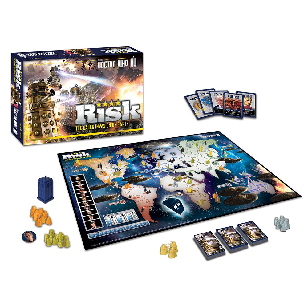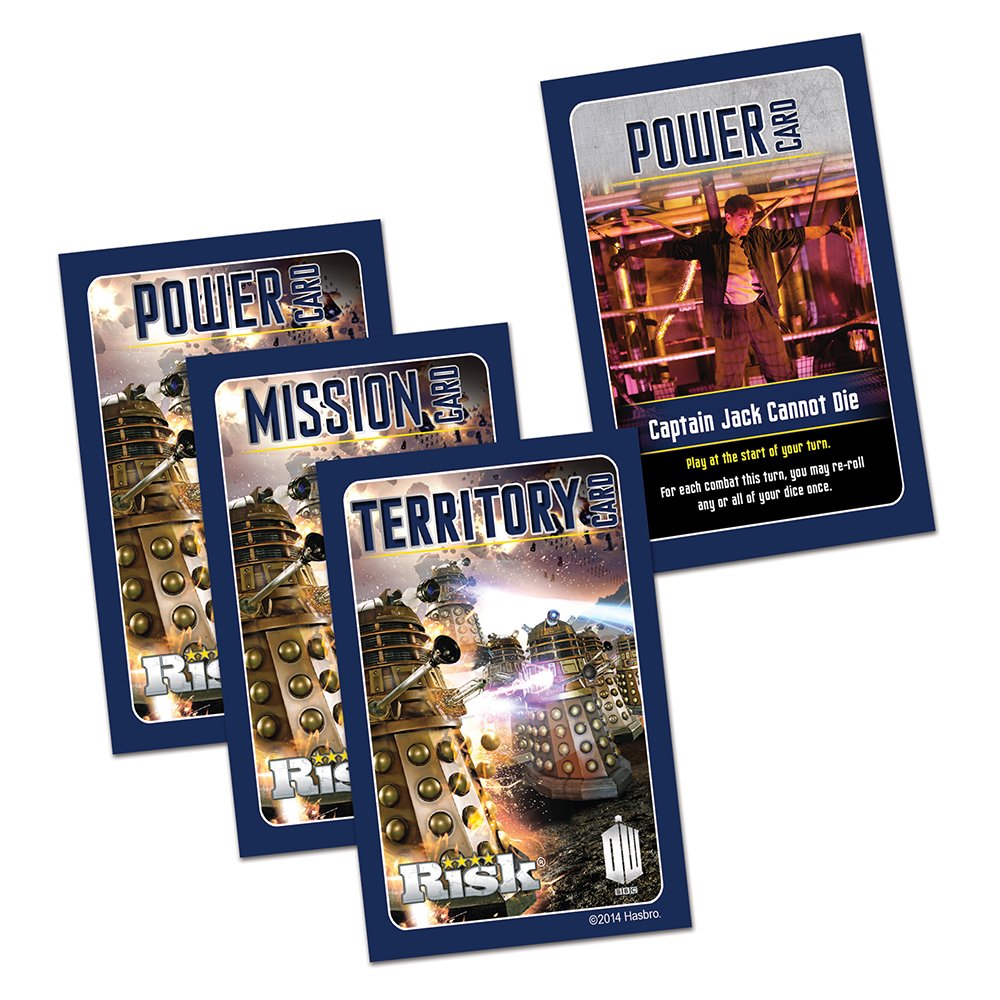 2 distribution de deux mission, sur certain territoire ce troue une photo d’un personnage de l’univers de vous savez WHO ( notion que la traduction de who c’est qui et que les deux mis bout à bout ça donne WHOQUI de la à penser que Georges a tous piqué au doctor) , Vous gagner ce territoire vous gagner des armée en plus si vous avez la carte mission