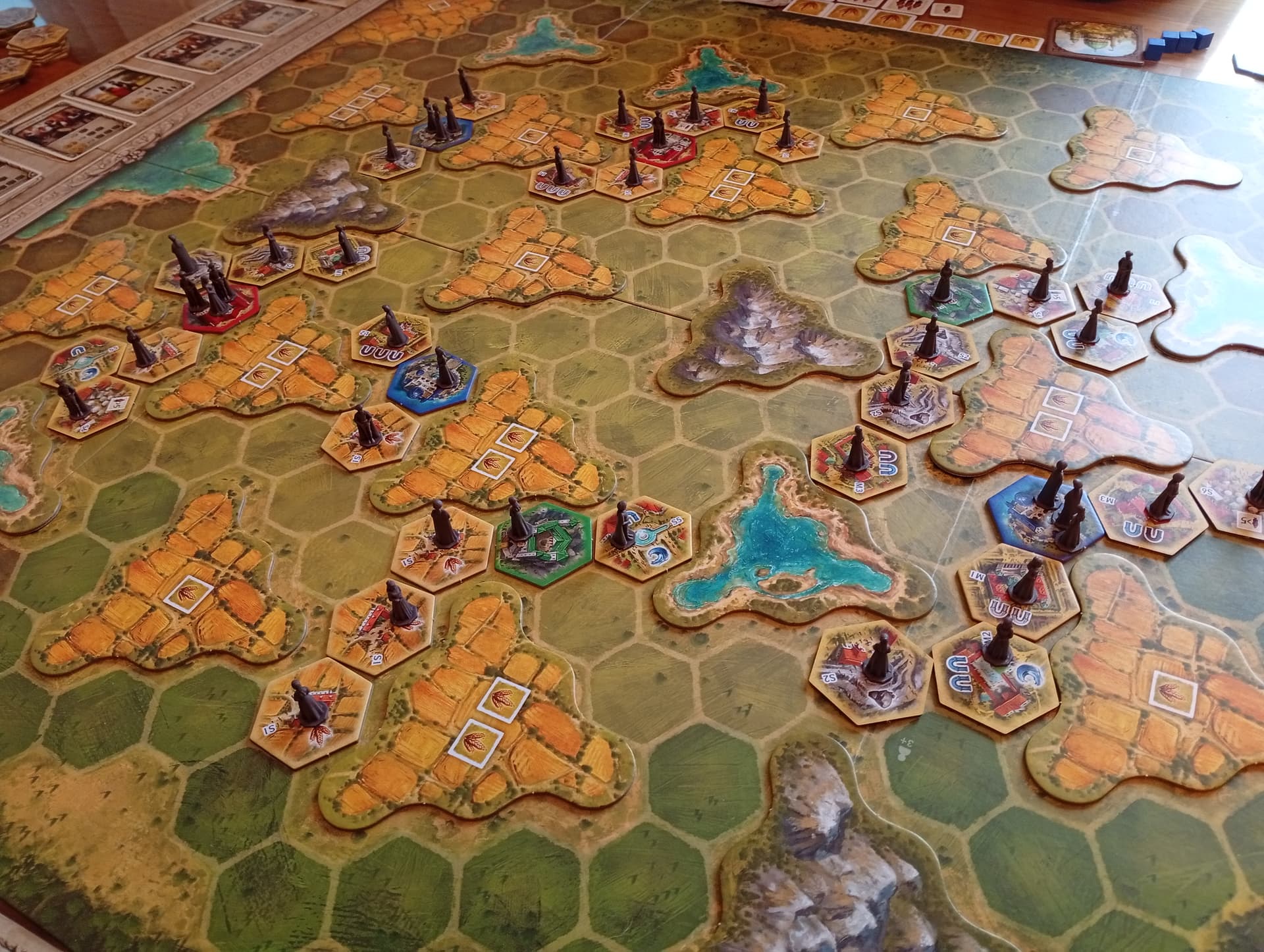 Pour info, je viens de mettre à jour la nouvelle édition sur la fiche ainsi que l’ancienne (notamment le matériel). C’est sensiblement la même chose. Par contre la nouvelle édition propose une extension avec du matériel rajoutant des bâtiments (port, théâtre etc…de nouvelles cartes politique, 2 terrains et des aides). A voir ce que cela donne. Dommage, je n’ai pas vu de système de comptage facilitant le rythme entre les phases. Cette nouvelle version ne doit pas échapper à ce petit souci de la première. Si il y a des avis sur ce que donne l’extension, je suis preneur.