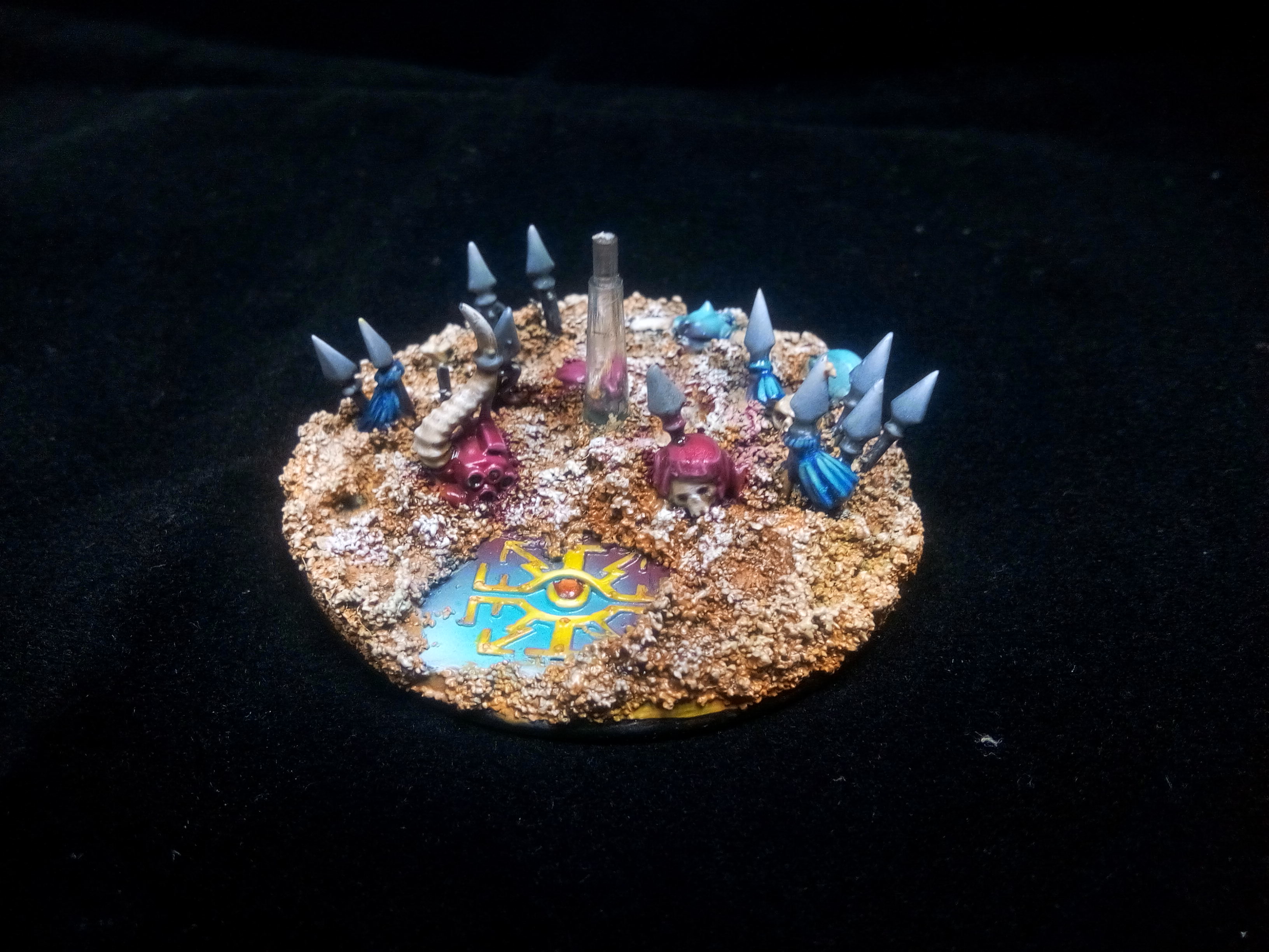 J’ai pas mal pompé le travail de Duff (le pro qui a peint le master résine pour Petersen games), principalement pour la couleur des tentacules et l’OSL autour des yeux, et j’ai repris des éléments du schéma de mes starspawn et de mes cultistes verts histoire d’avoir une cohérence.