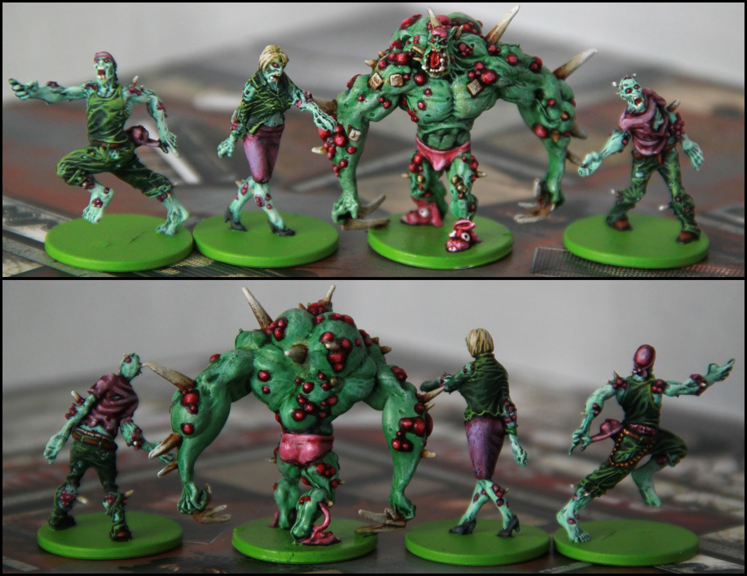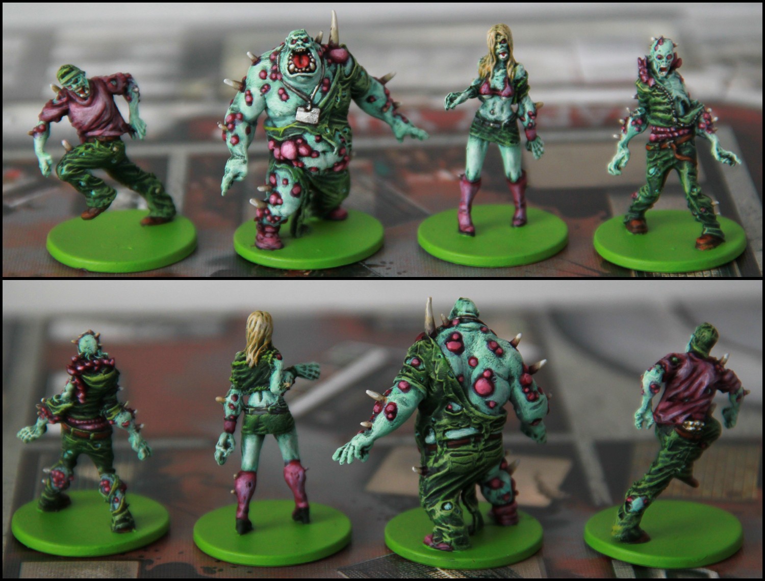 Roolz dit :Une raison particulière pour avoir peint les socles des Z en vert (ou en rouge pour ceux d'avant)?Au cas ou tu ne connaisses pas le jeu : Ce sont simplement des categories de zombies differents des zombies "normaux", avec une distance d'elimination possible variable. Meme avec un schema de couleur sur la figurine, on peut parfois ne pas voir une categorie dans un groupe de 7-8 qui sont dans la meme piece et se retrouver sur une case ou on ne pourra pas eliminer le zombie correspondant (et donc mourir betement). Du coup la lisibilité est tres importante.
