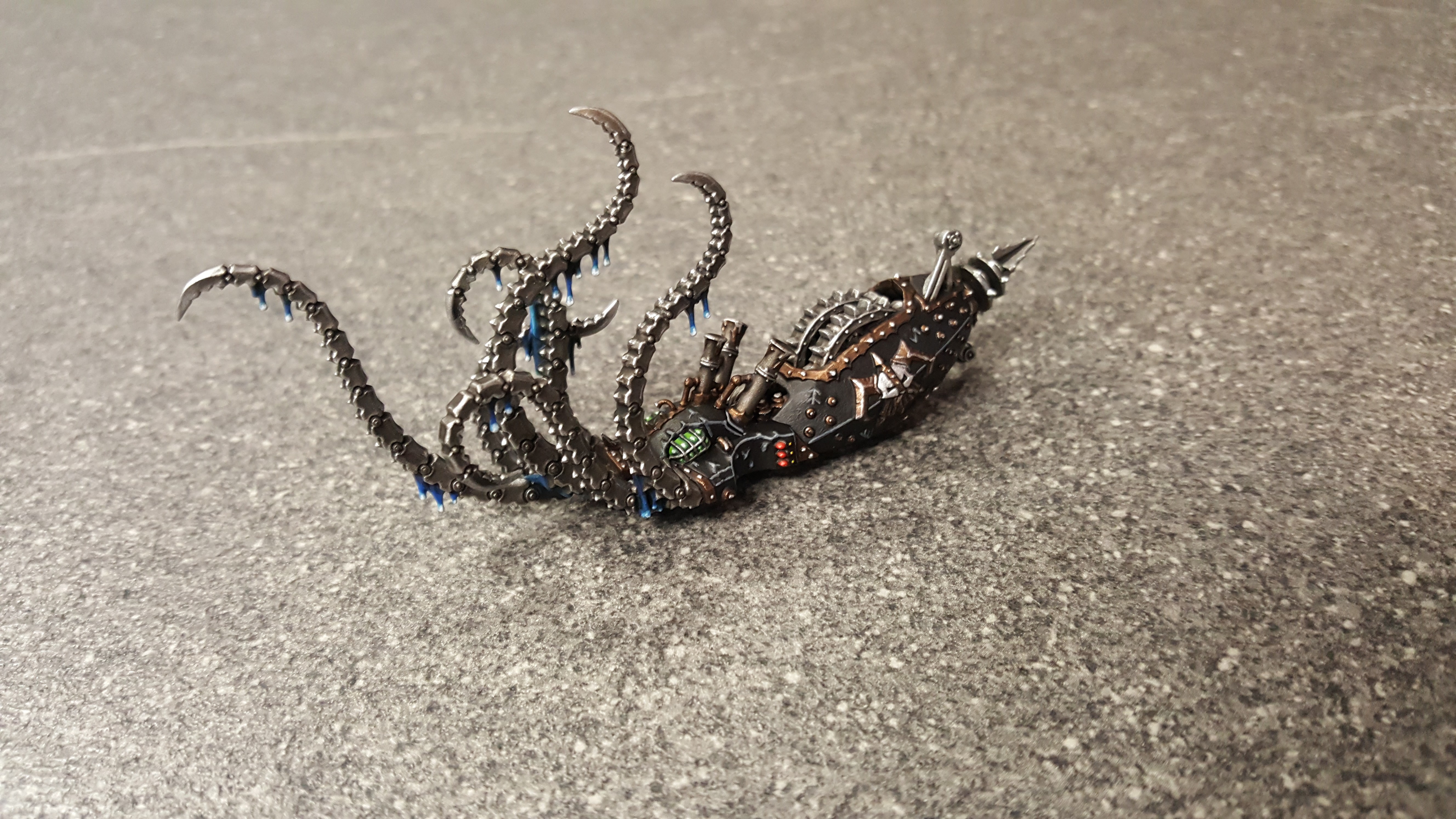 Bon je n’ai pas le même niveau que vous mais voici mon Kosatral Khel. J’ai utilisé du médium métallique PA pour l’effet du même nom sur la peau. Ca rend mieux en vrai qu’en photo car la lumière sature les reflets.