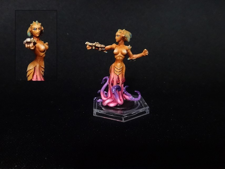 Vu que j'ai peint tous les détails, j'allais pas zapper les veines : ça prend 5 minutes par fig, gain de temps négligeable. Plus, rappel de teintes avec les reflets bleus des cheveux.