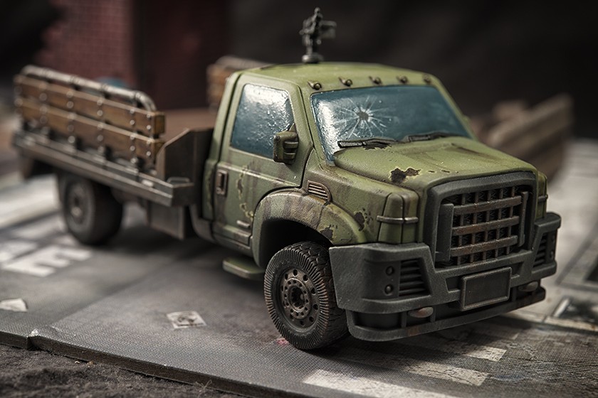 2° Peinture camion vert : base > loren forest (GW), lum 1 > straken green (GW), lum 2 > nurgling green (GW) via aéro
