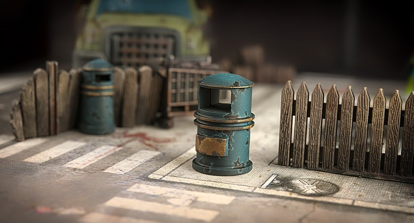 6° Rouille sur métal : lavis agrax earthshade (GW), puis brossage ryza rust (GW), puis agrax earthshade (GW)