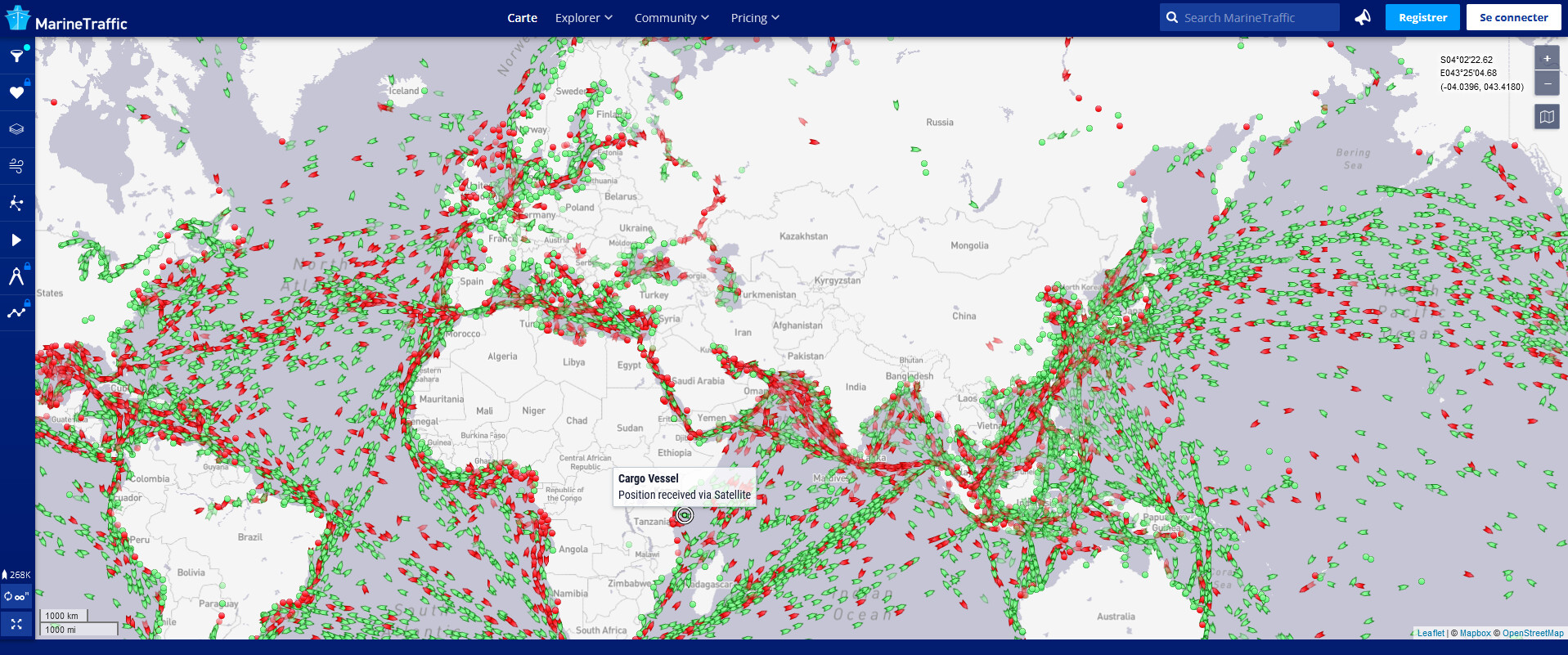 Tous les cargos et tankers circulant dans le monde là maintenant tout de suite.