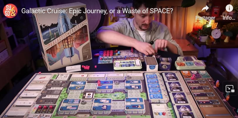 En anglais, mais il y a aussi les images du jeu qui peuvent être intéressantes, la chaine Shut-up and Seat Down présentait début décembre le jeu Galactic Cruise. Avec une petite réflexion sur l’intérêt de présenter un jeu qui est sorti déjà depuis un moment (enfin en 2025 quand même !) et ne pas être en permanence dans la « hype ». Un jeu de placement d’ouvriers qui prend une place semble-t-il colossale, à savoir une table par joueur (peut-être un peu exagéré) ?? En tout cas un ton que j’apprécie toujours, so british.