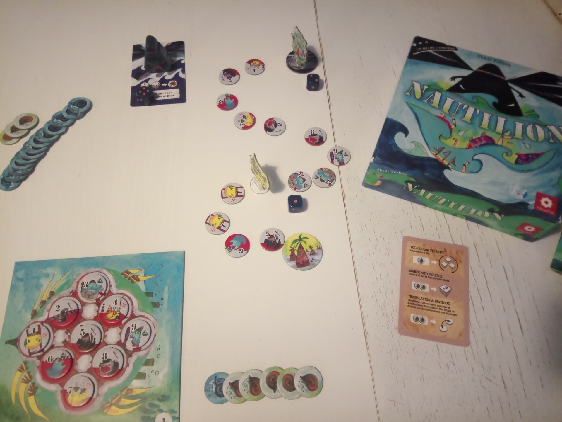 J'aurais peut-être pas dû gagner comme ça. J'espère ne pas avoir dégouté ma petite famille parce que j'aime assez et je voudrais bien y rejouer. Ma première excursion dans l' **Onivers** de Shady Torbey, hâte de voir la suite... 2017 ne voulait pas y jouer et depuis on a déjà retenté deux fois de battre le loup...Mais je suis quand même sorti de chez moi cette semaine pour me faire expliquer des jeux par leur auteur en personne : Léo Blandin.