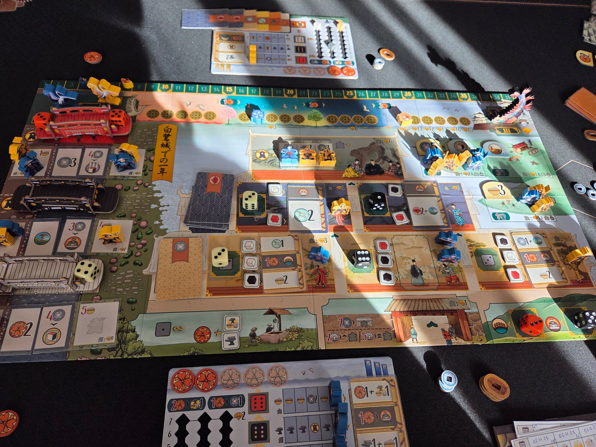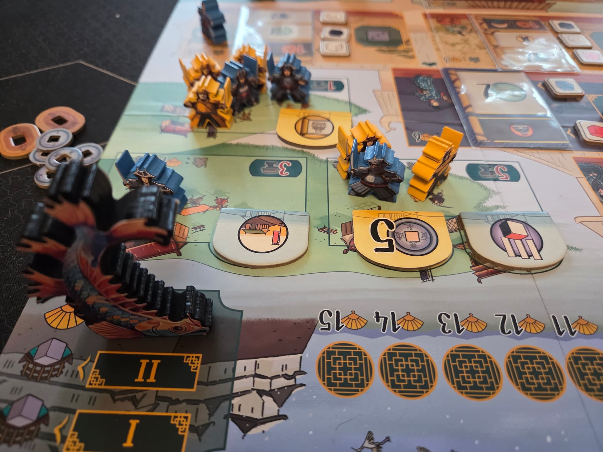 J’aime bien le petit rajout qu’apporte les tuiles cérémonie : qu’on va sélectionner au début avec les deux cartes. Ca rajoute vraiment quelque chose d’intéressant.