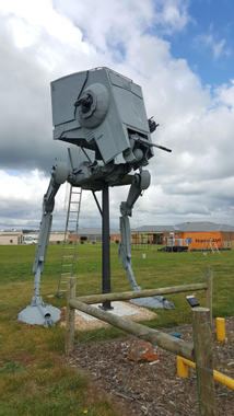 Je dirais que le AT-ST devrait être en taille mini mais qu’il est en taille XXL. Equivalent taille Mini et taille Papa. Et Papa aime les jouets plus grands!