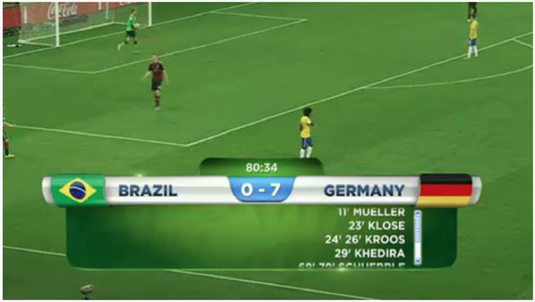Govin dit :Qu'est-ce qui est un fake ? A ce stade là du match, il y avait bien 7-0 pour l'Allemagne, et les Brésiliens réduisaient le score pour "revenir" à 1-7, score final.