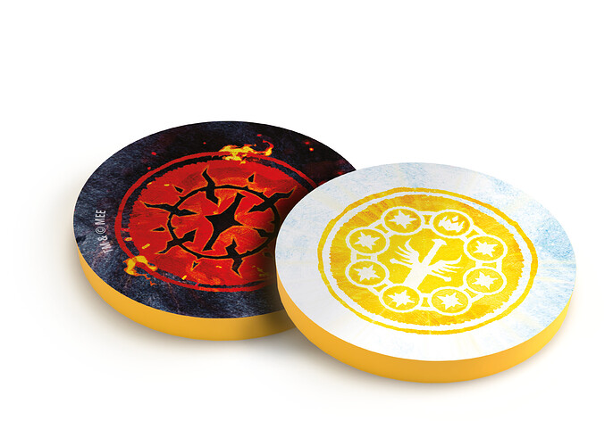 En parlant de tuile promotionnelle, j’ai vu qu’il y avait également un goodie pour cette extension (des goodies pour des boosters, on arrête pas le progrès…) : une pièce pour décider de qui commence