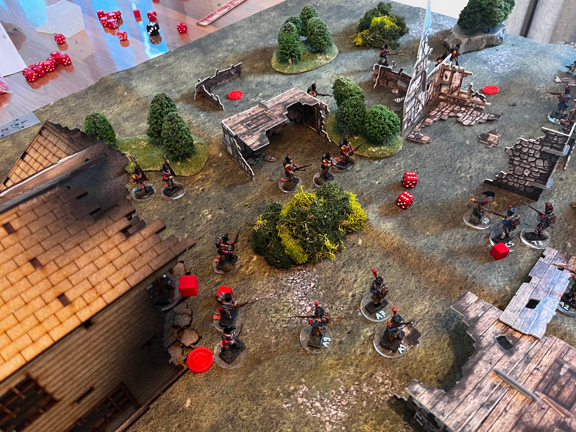 Mécaniquement on est sur un jeu au dé à 6 faces, avec des malus de tirs selon distance et couvert, mais toujours très simple, des corps-à-corps avec des bonus si on a des alliés. la gestion de la recharge du tir est aussi intéressante et demande du timing. Enfin bref, pas mal de subtilités mais toujours simple, je pourrais parler des tirs appuyés, qui donnent +1 au dé si on ne fait que tirer dans l’activation. Un jeu riche et simple.