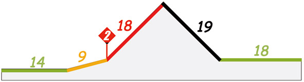 Pour ton exemple : 78 kilomètres dont un col de seconde catégorie en milieu de course. Col assez long (18 bornes !) . Un plat tout aussi long permettra aux pelotons de rattraper si-besoin les grimpeurs échappés…