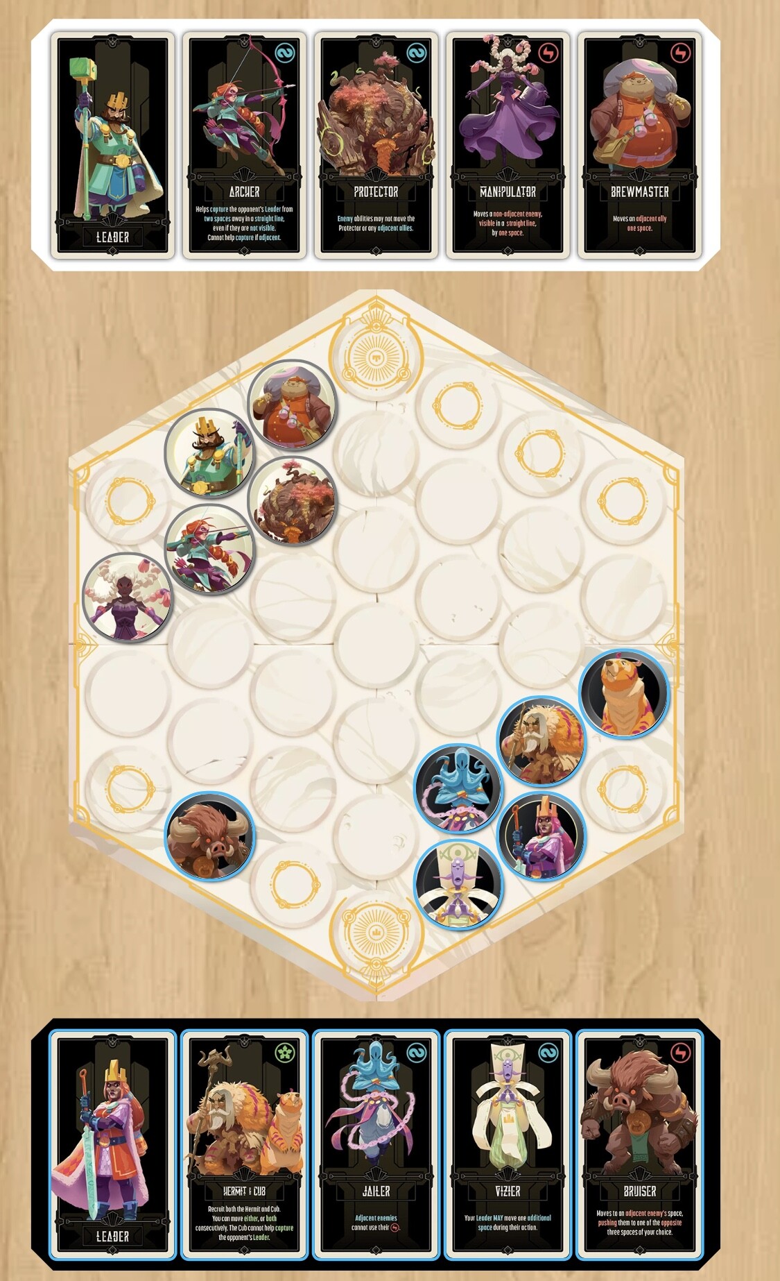 Quel est le secret de ce royaume où la paix règne depuis des millénaires ? Tous les printemps, les prétendants au trône recrutent chacun 4 champions et s’affrontent dans des duels aux règles insolites… Pas d’armée à diriger, ni de sang à verser : le premier à capturer son rival l’emporte. Votre heure est venue… Tactique, audace et stratégie distingueront les véritables Leaders !