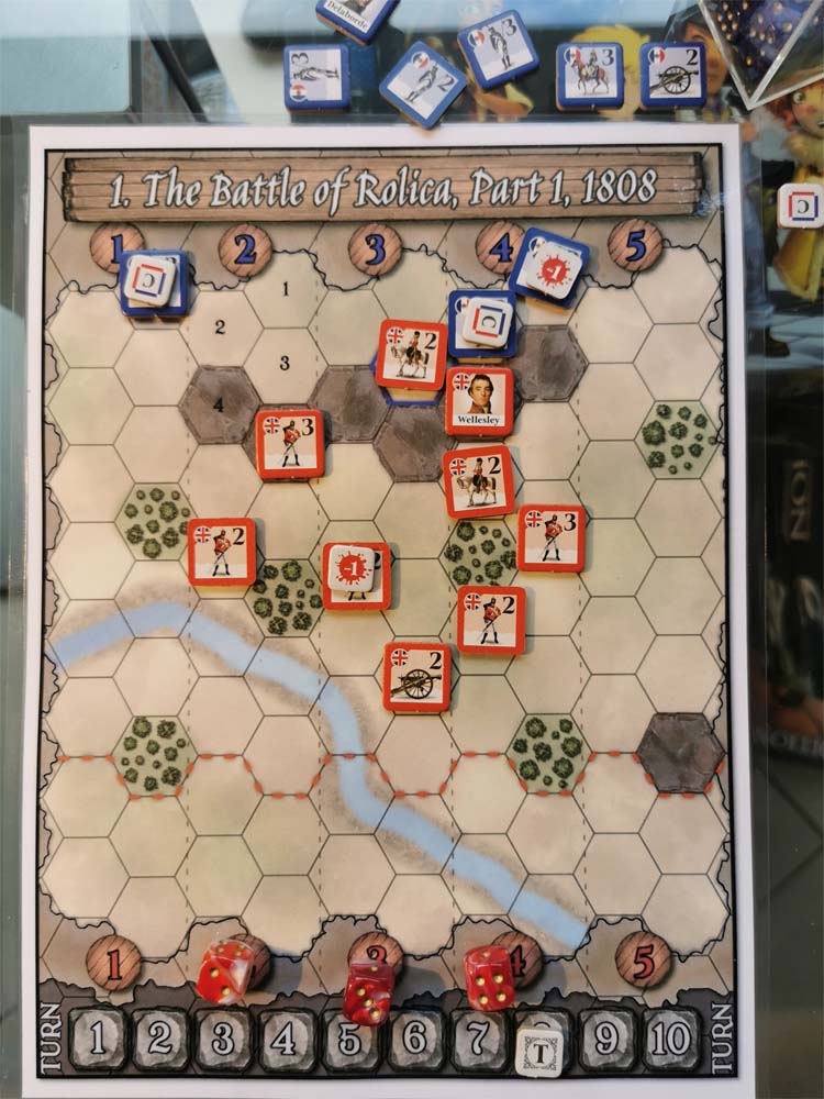 J’ai hâte de jouer les prochains scénarii (il y en a 20 dans le livre jeu). Dans le scénario 2, par rapport au scénario 1, les rôles de l’IA et du joueur sont inversés dans la première partie de la bataille de Roliça du 17 août 1808.