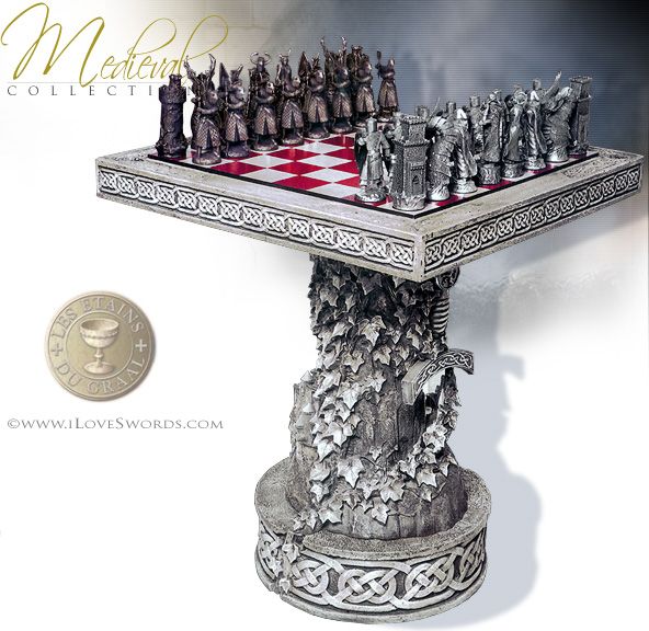 C'est pour ça qu'on trouve facilement des jeux avec des figurines de toutes sortes. J'ai un jeu qui ressemble à la version de Lewis. Dans les boutiques et magasins, j'ai vu de tout : un jeu d'échecs Simpsons, un avec des soldats de plomb napoléoniens, un heroic fantasy avec des figurines en pierre (?) assez grosses, et une table pour le plateau (le pied à des épées sur le côté, et du lierre qui grimpe autour) pour quelque chose comme 3000€...