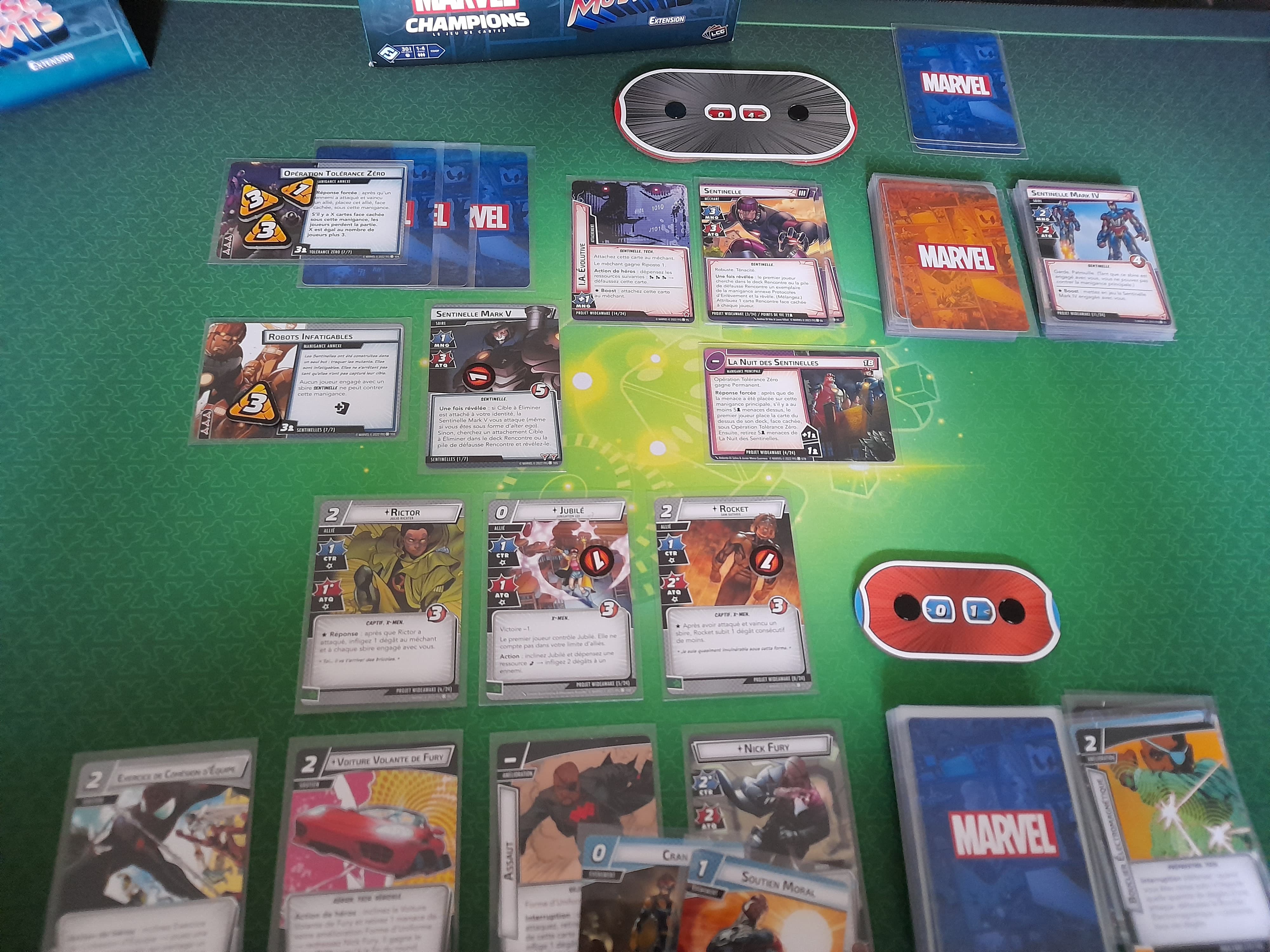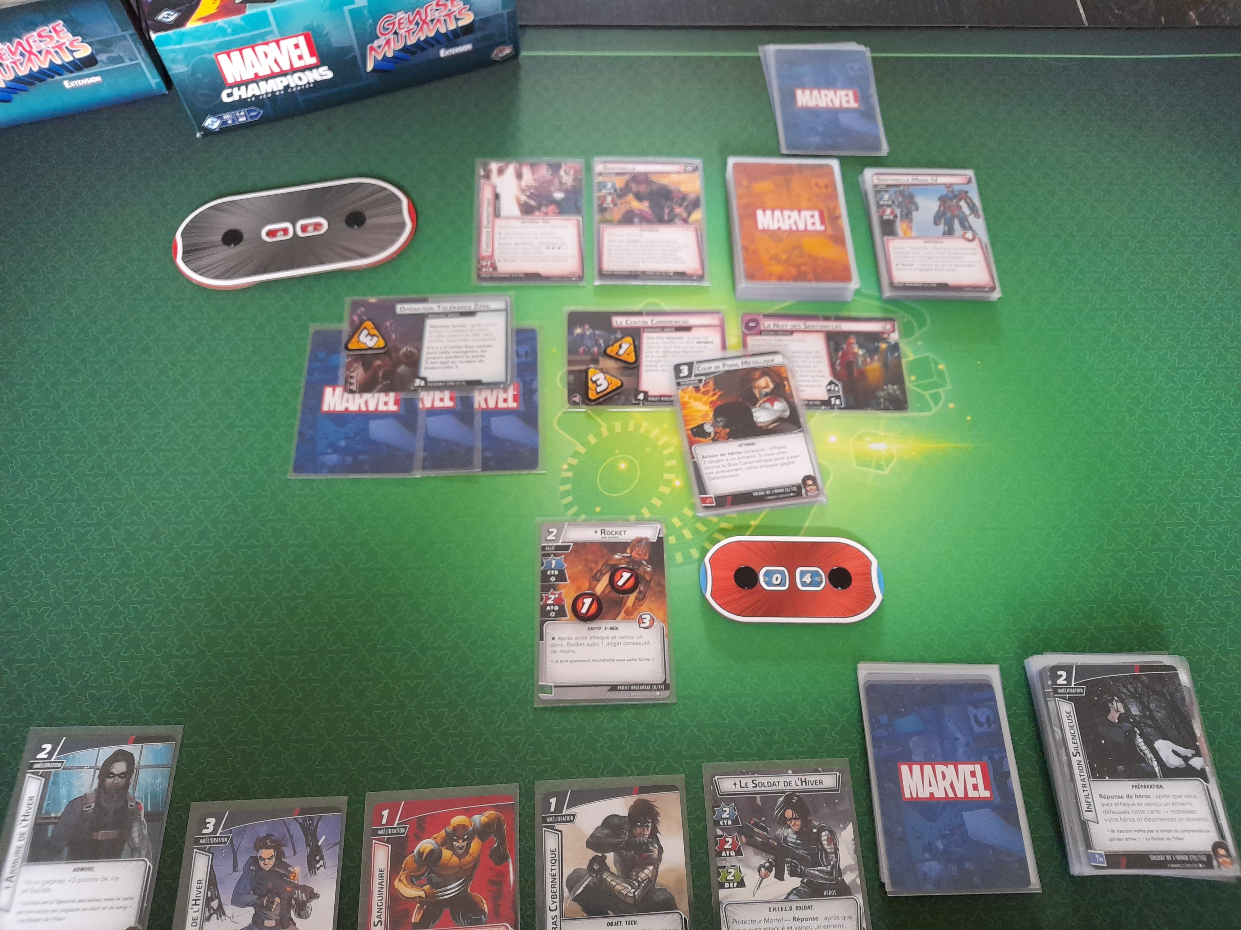 Je crains que l’ajout du seul pack Captain America ne suffise pas à construire 2 decks supplémentaires, aussi je pense utiliser un pool de cartes plus large en intégrant dès maintenant les trois prochains Héros (Captain America, Miss Marvel et Thor) et monter directement une deuxième série de 4 decks. La réflexion est en cours.