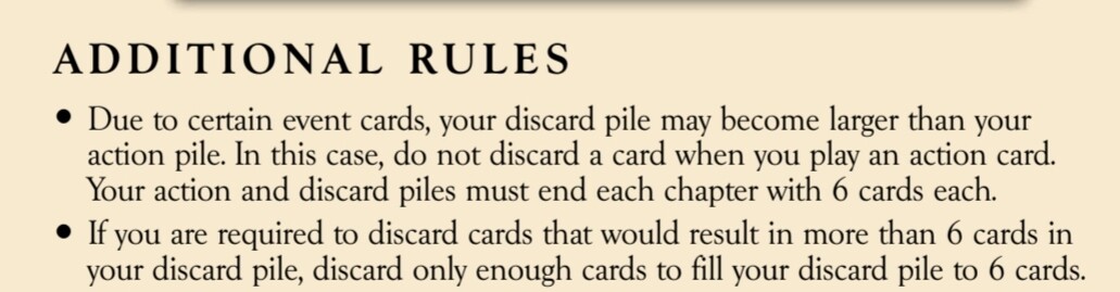 Si le 1er événement fait défausser 6 cartes actions, il ne t’en reste donc plus que 6.