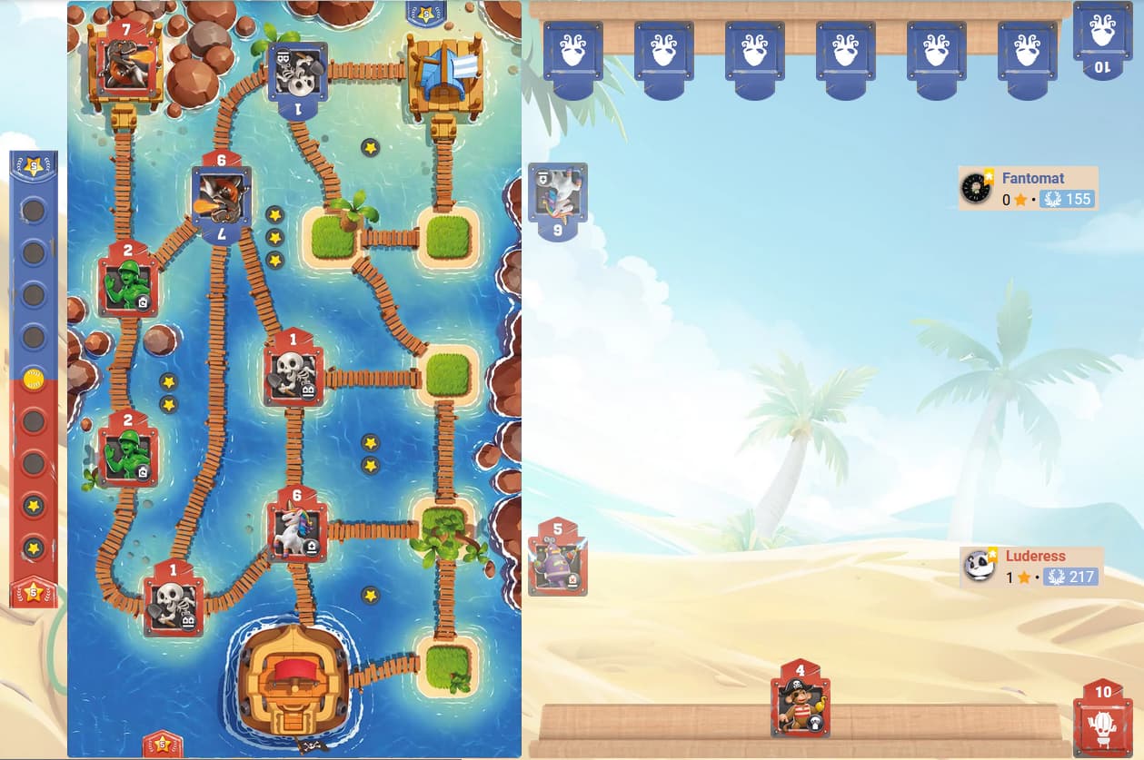 Après une rude bataille sur les divers croisements, Izwal pioche alors que son navire est exposé. Ludress profite alors de cette petite erreur d’inattention pour l’aborder.