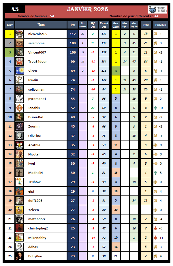 Ainsi, j’espère que de nombreux Trictraciens vont viser cette place de numéro 1 lors de l’année 2026.
