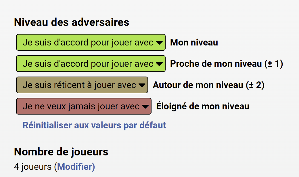 Pour tous les jeux, le principe est le même : les premières secondes, il recherche pas trop loin de ton niveau, mais si tu laisses la barre de temps de recherche d’adversaires avancer (disons 10 secondes environ), il élargit, etc. donc il cherche à te faire jouer coûte que coûte.