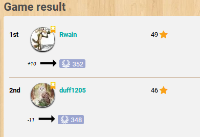 Azul : Un “tiers de finale” seulement est arrivé à son terme, pour s’achever sur la victoire de TPShow devant Maëline et 2pak71. Ce fut très serré entre les 2 premiers, avec un score final de 72 à 71… mais cela a peu d’importance à ce stade de la compétition. Finir 1er ou 2è entraîne les mêmes conséquences : se qualifier pour les 1/2 finales !