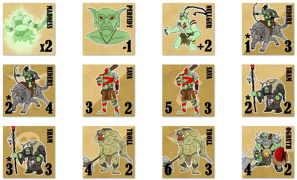 Les unités (chefs ou de combat) ont une capacité de mouvement et de combat (regroupant éventuellement celle de tir) et représentent 500 à 1000 ou 2000 hommes, une dizaine ou vingtaine de monstres, un personnage illustre ou héros (les flottes sont à venir plus tard).