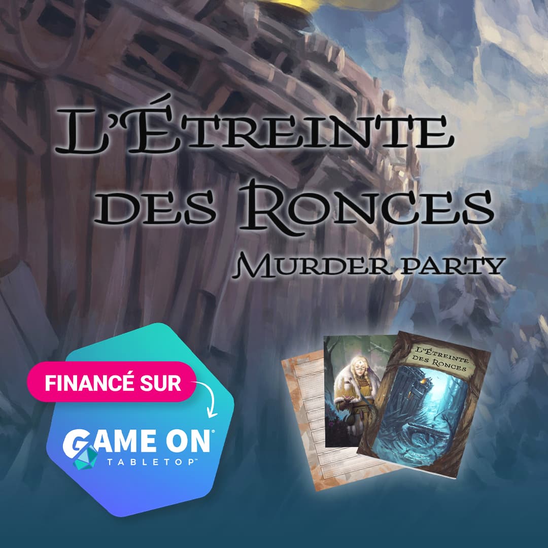 Je prépare une campagne sur Game On Tabletop pour l’Étreinte des Ronces, un scénario de murder party clef en main à organiser dans son salon. Il s’agit de mon troisième projet de crowdfunding.