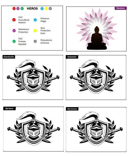 - un espace consacré uniquement aux cartes de présentation des persos. J’adore les illustrations des héros et pour l’instant je les choisis “à l’oeil”