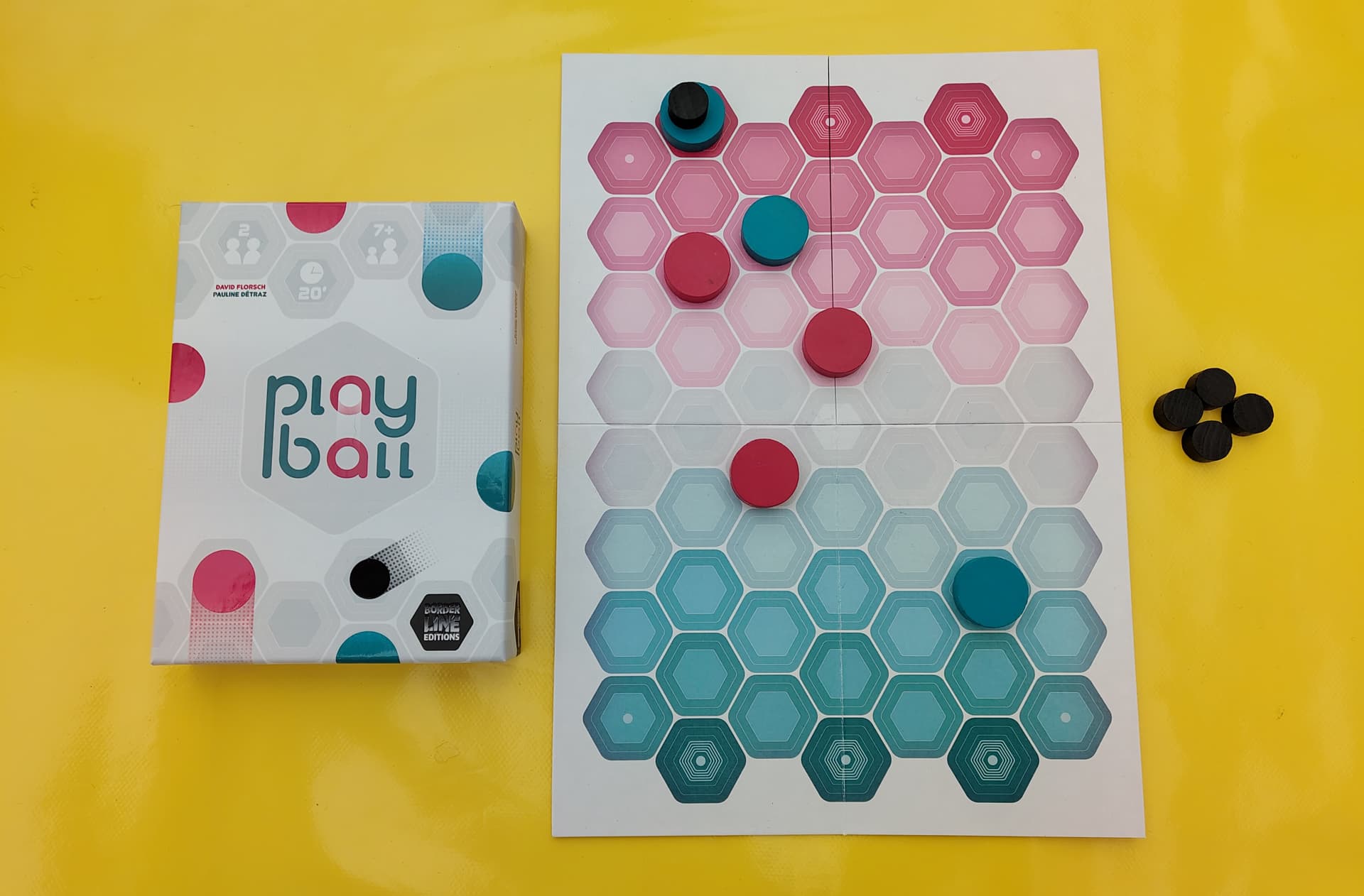 Un petit jeu abstrait sobre mais joli dans ses couleurs modernes. Un genre de Diaballik sur hexagones (déplacement et passes pour atteindre un enbut, mais ici avec une seule balle). À creuser pour voir ce qu’il a dans le ventre. Totalement ma came. Hâte d’y rejouer.