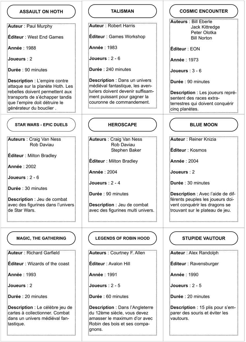 il y a quelques temps (longtemps ?), Mister Fourmi avait mis sur son site un concept que je trouvais excellent : sa ludothèque sous forme de carte à jouer avec une carte par jeu (http://studios-brik-brok.chez-alice.fr/)