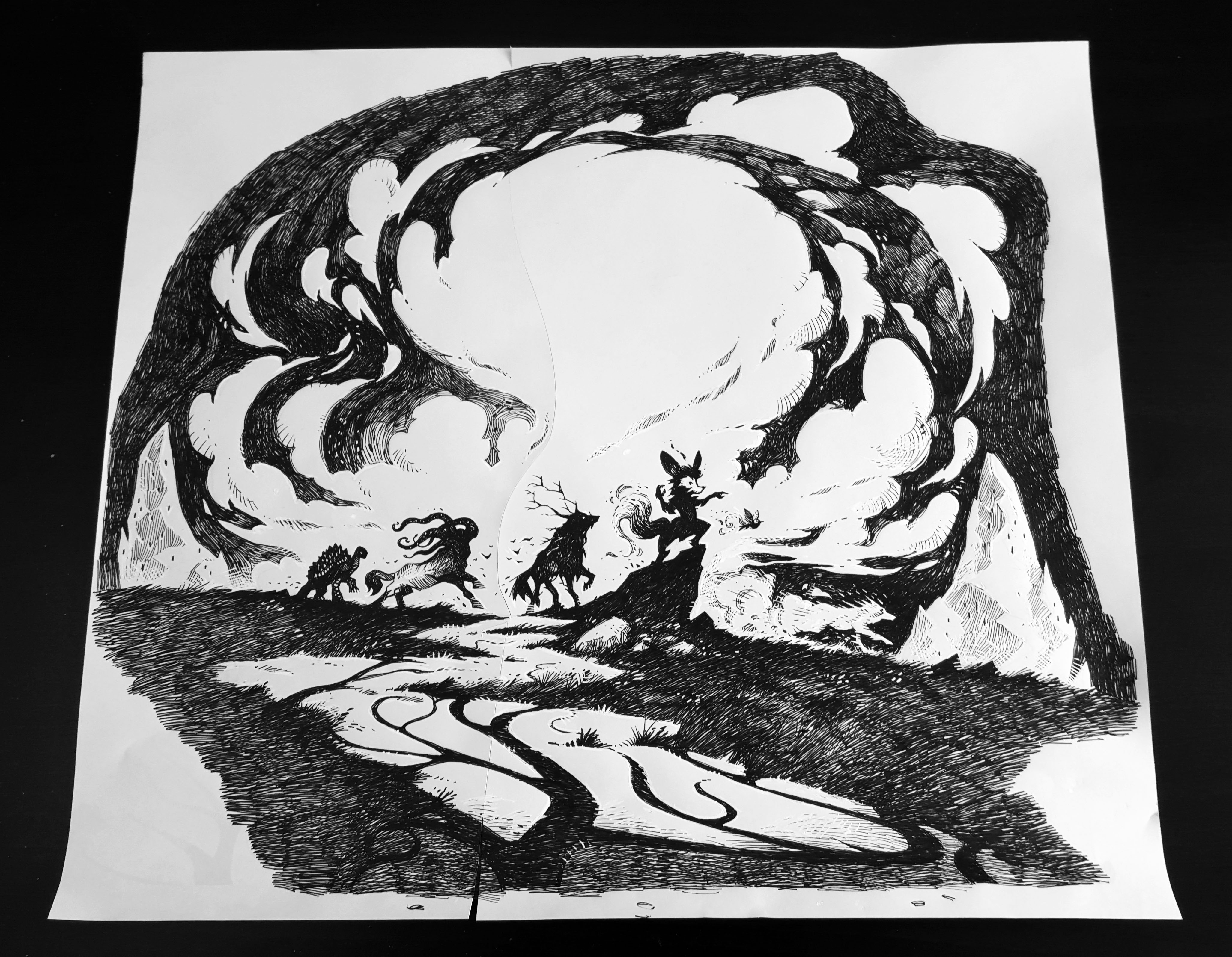 Avant (et un peu pendant) de me consacrer pleinement aux jeux de société, j’ai eu une vie professionnelle et artistique bien remplie en édition jeunesse (couvertures, albums, magazines, etc). Où on est très souvent amené à illustrer en noir et blanc, par exemple pour des vignettes de chapitre dans les romans pré-ado.