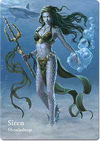Chant de la sirène : Comme un sort mental rapide, la sirène peut payer 1 point de mana pour le marqueur de chant de la sirène sur une créature non mage dans un rayon de 2 zones. Durant sa phase d’action, la créature doit bouger au moins d’une zone vers la sirène si cela est possible, et ne peut pas l’attaquer. A la fin de sa phase d’action le marqueur est retiré. Les créatures alliées gagnent aussi +2 en attaque de mêlée.