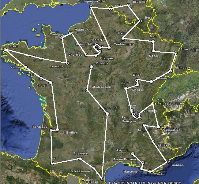 Le but est qu’il passe par le plus grand nombre possible, pas qu’il bouffe du kilometre, juste pour faire du kilometre. Pour cette raison, on limitera 1 lieu par TTcien.