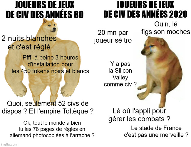 Ben non, l’erreur est trop grave. Un jeu de civ des années 80, ce n’est pas un sujet d’erreur. Un peu de sérieux, même dans le comique, de respect et de rigueur ! Sinon on va jouer les égyptiens avec les pions population gaulois pendant qu’on y est ! Ou pire, jouer sans les règles optionnelles ! Pfff.